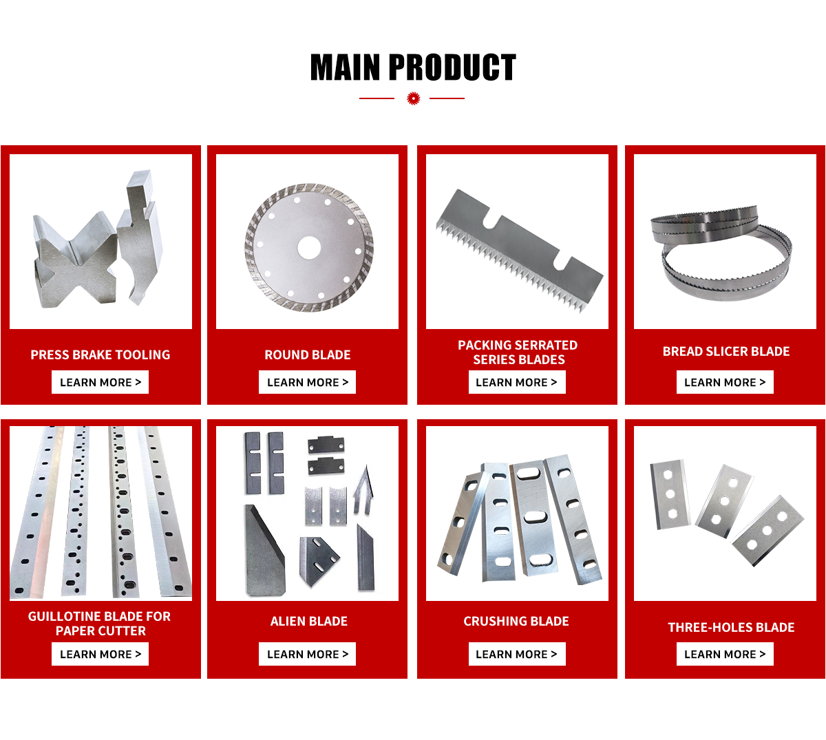 Productos principales:Cuchilla, cuchilla redonda, cuchillas industriales, cuchilla dentada, cuchilla de forma especial